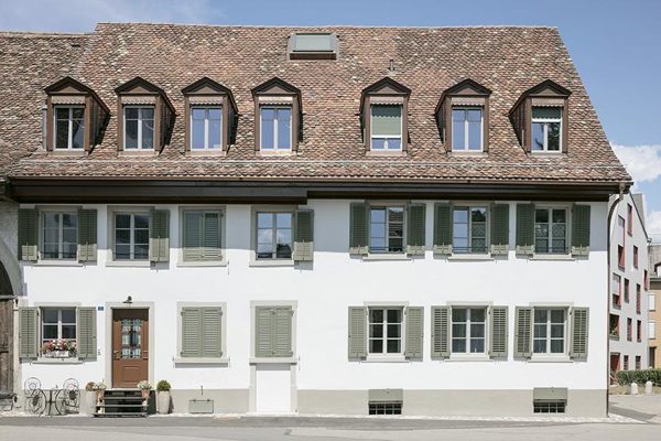 Wir konnten 2015 den alten Bären (Baujahr 1703) , der zum Ensemble der alt ehrwürdigen Krone gehört, von der Stadt Dietikon erwerben. Wir wollten ganz neue Wege gehen und es war uns wichtig, dass die alten Aussenmauern bestehen bleiben, damit das Gebäude seinen ursprünglichen Charme und Charakter von aussen behalten kann. Dies bedeutete, dass das Gebäude entkernt und mit einer Holzkonstruktion aufgebaut werden musste. Das Untergeschoss wurde mit einer neue Betondecke versehen, der Rest mit einer vollständigen Holzkonstruktion aufgebaut. Die Aussenwände in einer gedämmten Holzständerkonstruktion, die auch als Tragkonstruktion dient. Die Geschossdecken aus Holzbalken gestossen. Die Wände und Decken sind mittels Gipskartonplatten verkleidet, damit der Schallschutz gewährleistet wird.
