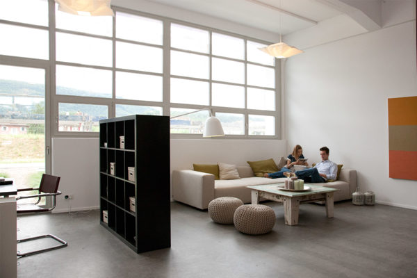 Aus der alten und verlotterten Schuhfabrik sind attraktive Mietlofts entstanden mit viel Raum zum Wohnen und Träumen. Von aussen blieb der ursprüngliche Charakter bewusst erhalten. Innen können die Lofts individuell in mehr oder weniger Räume unterteilt werden – je nach Bedürfnissen der Mieter. Zusätzlich bietet eine als Sicht- und Lärmschutz dienende moderne Gewerbehalle Raum für 14 kleine bis mittlere Betriebe.